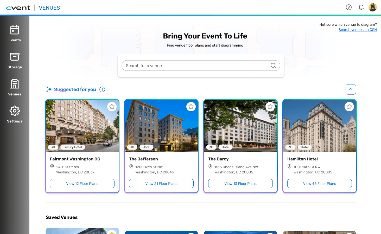 A B2B SaaS UX redesign focused on clarity & venue find-ability for event planners.